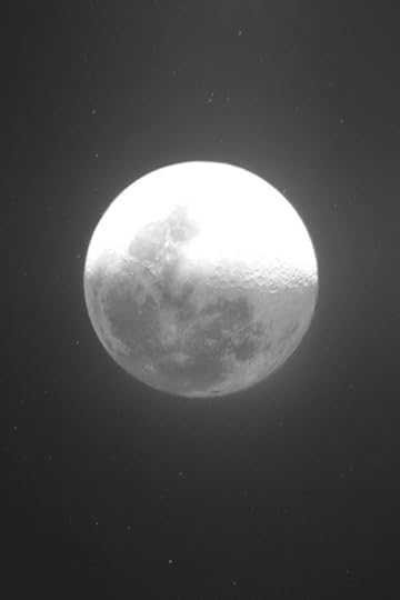 All of us turn our eyes higher, to see the three-quarter moon floating in a fog-flecked winter sky—glimmering around that uneven globe, an ethereal silver circle.