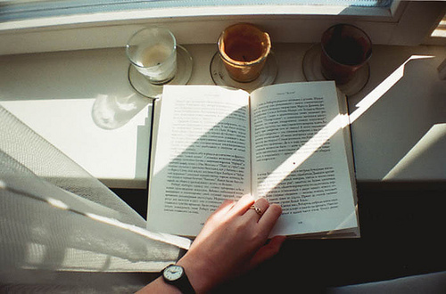 Lovely coffee and book illustration from: a little morning reading (flickrjo)