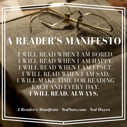 In the digital age of Android and iPads, Facebook and Instagram, I think there’s the need for a new Reader’s Manifesto, a statement of action that will remind readers everywhere of their identity and the difference that reading makes in a busy world.