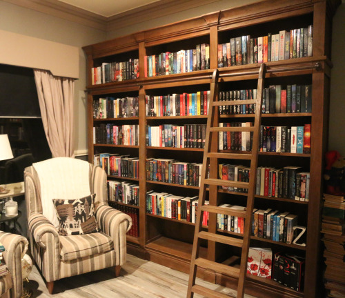 BOOKS! I’ve almost fully organised one of the bookshelves in the library. I am now sitting in the middle of the floor surrounded by books…