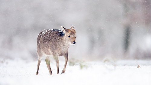 “The deer tracks are deep narrow holes thrust into the snow. I follow the tracks with my eyes. The deer stopped for something here. I stare closely at the frosty loam. Scattered eggshells, newly broke, the yolk still drying in the cold. The deer hunt eggs. I glance up at them ahead. Deer they are. The hart of heaven and his dame. A shiver runs from arm to arm. A lamb turns lion in the night.”