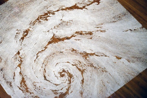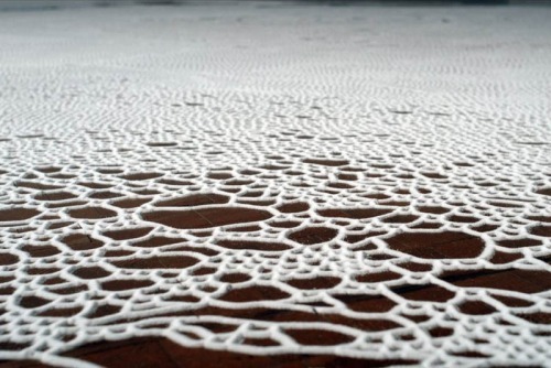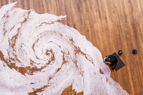 Yamamoto’s works are mostly temporary, intricate, large-scale installations, or, “salt labyrinths”.