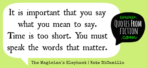 "It is important that you say what you mean to say. Time is too short. You must speak the words that matter." - The Magician’s Elephant (Kate DiCamillo)