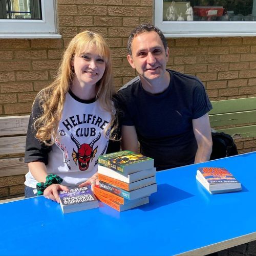 Such a pleasure to appear on-stage yesterday with @jennifer.killick.56 at @barneskidslitfest. The sun shone, the audience was superb (and full of sinister invention), and we talked about outlaws, ghosts, and the horrors of Saturday detention…