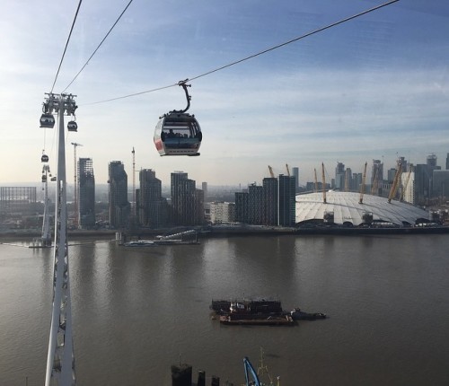 The O2 and the South London shoreline from the superb Greenwich gondolas.