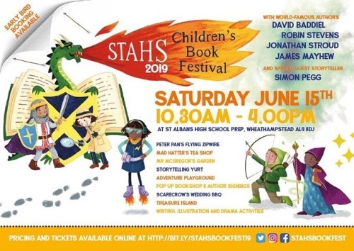 Hey, I’m part of this! And so are @redbreastedbird, @Baddiel, @mrjamesmayhew and the mighty @simonpegg! Now that’s GOT to be a book fest worth visiting! Join us on Saturday June 15th, if you can!