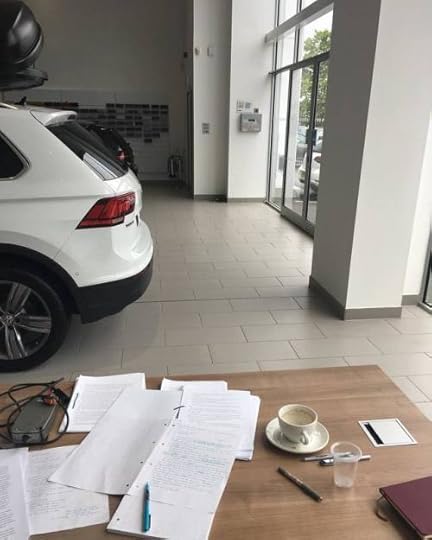 Unusual place of work today - I’m writing in the corner of a car showroom, while my car gets its service… It’s surprisingly peaceful.