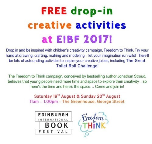 Take a break at @edbookfest to get creative! FREE drop-in activities from @iamfree2think on Sat 19th & Sun 20th Aug. I’ll be there, wresting with toilet rolls, glitter and glue… bit.ly/2ssEIhL