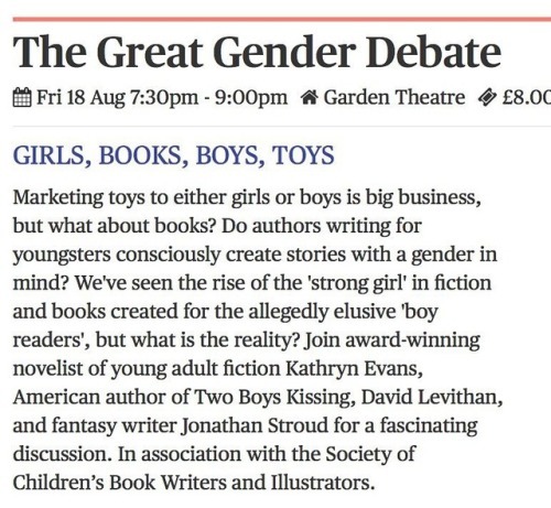 Do I write for boys or girls when I’m creating a story? Find out this & more in THE GREAT GENDER DEBATE at the Edinburgh Festival! @edbookfest bit.ly/2sMl02L