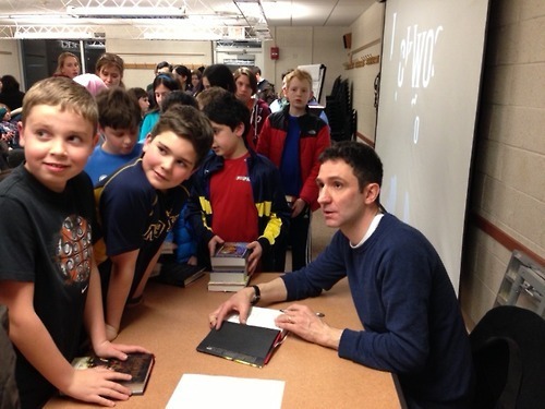 More packed Lockwooding in Philadelphia on Thursday. First, off north over the Schuylkill River to Havertown - the snow was thinner here than Washington, but there was still ice on the sidewalks - and to Cardinal Foley school for a great chat with 5th and 8th graders. Then to Penn Valley Elementary School, where I met 250 fine students from 4th and 5th grades. The events were set up by the lovely folks at Children’s Book World in Haverford, where I did my evening’s event, during which some of the audience gave me some great ideas for Lockwood 3. As a reward at the end, they showed me down into the extremely spooky cellars beneath the store, which reminded me of the time years ago when I genuinely got locked in the pitch-black basement of a massive bookshop. And was only freed by a passing town crier. But that’s another story….
