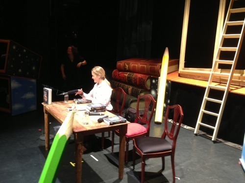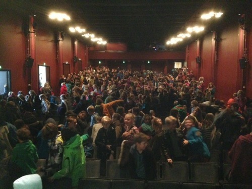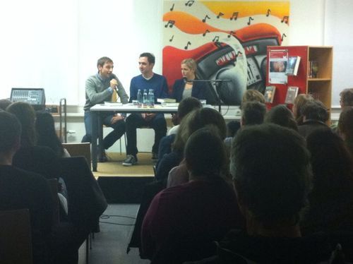 In the evening we went to the local Gymnasium school, and performed to a packed hall of 200 people. Halfway through the tour now, and each event has been distinctive in its own way: this was the most theatrical, with us spotlit on an impressive stage.
