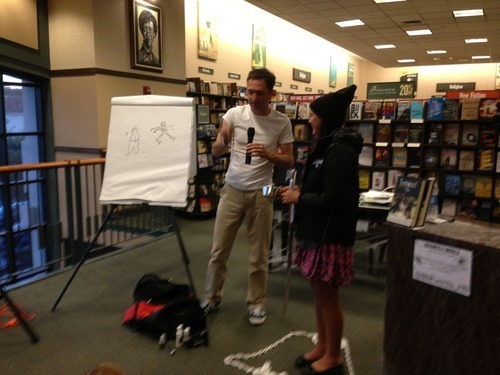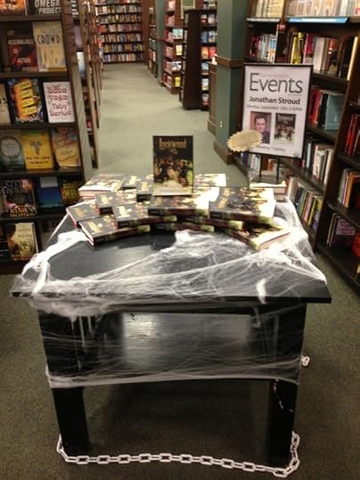 Her illness meant that I had to cancel my US tour after just one event – a talk at Barnes and Noble, Huntington Beach, CA on 16th September. This was a fantastic evening (see photos below), with ghosts, cobwebs, chains and cookies all laid on by Jeanne Ferrara and her brilliant team. It was lovely to meet old fans and new, and chat about Lockwood (and Bartimaeus). I’m just sorry that this, for the moment, will be my only American event. The plan, though, is to reschedule my US tour for next spring when I very much hope to visit the same stores and schools that I’ve missed out on seeing now.