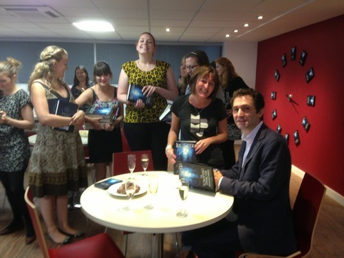 Celebrations at Random House to mark publication day. Note the fantastic Lockwood clock!