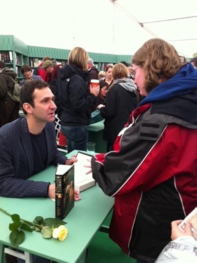 I had a great visit to the Hay-on-Wye Book Festival this weekend. Arrived late on Sunday and had a splendidly convivial evening with some of my fellow Random House authors, including Mini Grey, Candy Gourlay and the Etherington Brothers. Next morning, bright-eyed and bushy-tailed, we all went to the festival itself, which was humming with activity despite the heavy rain. Lots of authors were happily wandering about amid the throng; I went to listen to the historian Orlando Figes talk eloquently about the Crimean War. After lunch I did my talk about Bart & The Ring of Solomon and had a lovely Q&A session, with great questions from lots of young and enthusiastic readers. After my signing I reluctantly embarked on the long journey home. As I did so, the sun came out over the western hills; a beautiful end to a perfect day.