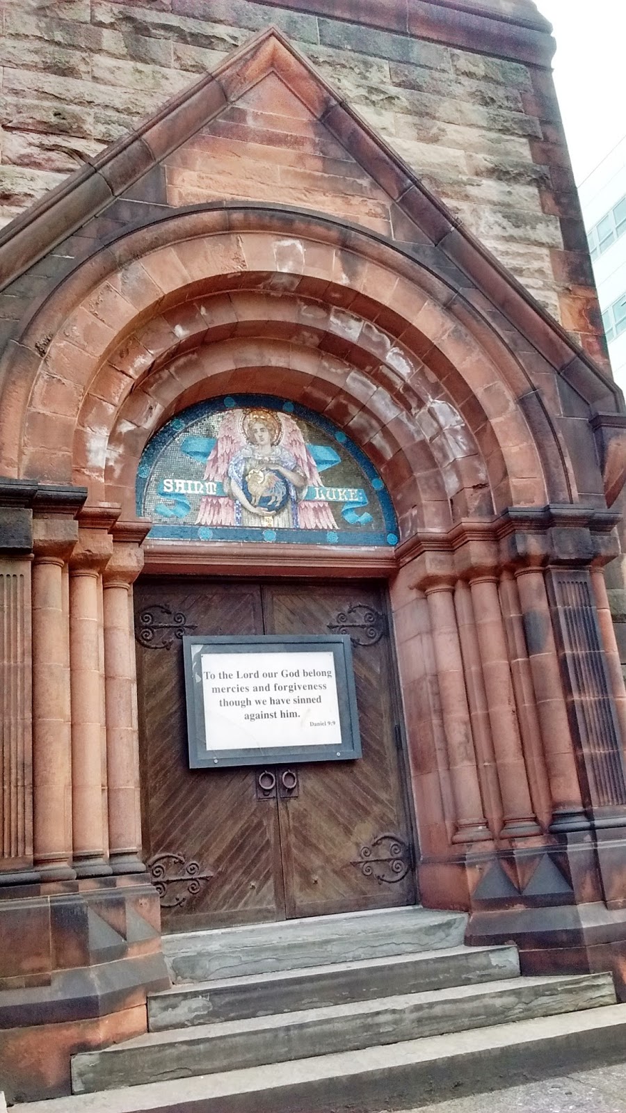 Jane and I walked and chatted after lunch, stopping to enjoy the CCNY campus and the neighborhood. I spied this church and had to snap it's front door. So beautiful!At two o'clock, the giant bell in the school bell tower chimed. We headed back to the subway to return home.