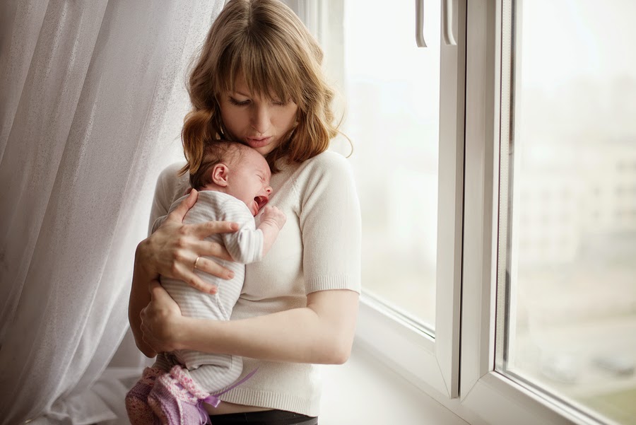 Peeking inside, she saw a beautiful blonde woman, holding an infant and walking to and fro with him while he wailed.