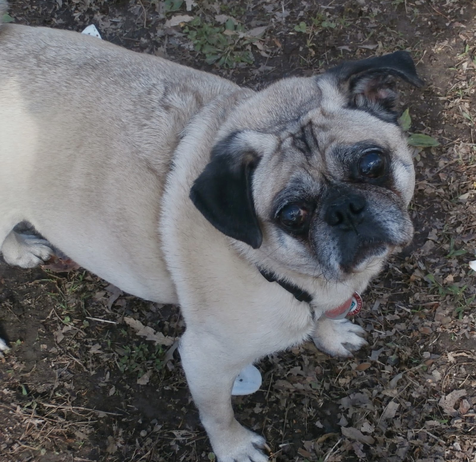 A familiar bark drew her attention. Her head snapped up. There, coming down the sidewalk on the other side of the street was a pug who looked an awful lot like Zander.