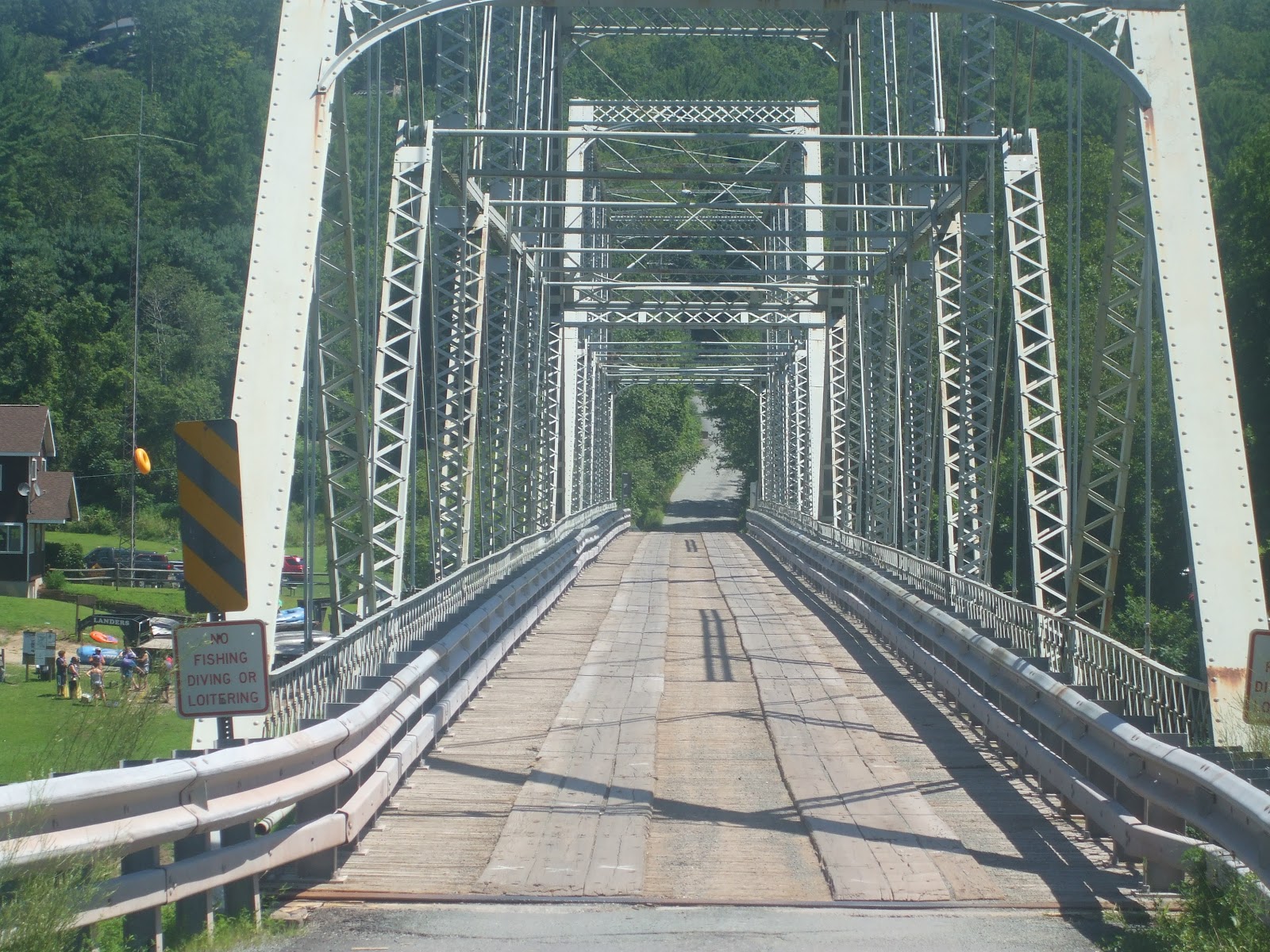A one lane bridge linking New York and Pennsylvania across the Delaware River.