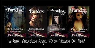 <!-- @page { margin: 0.79in } P { margin-bottom: 0.08in; direction: ltr; color: #000000 } P.western { font-family: "Cambria", serif; font-size: 12pt; so-language: en-US } P.cjk { font-family: "MS Mincho", "MS 明朝", monospace; font-size: 12pt; so-language: ja-JP } P.ctl { font-family: "Times New Roman", serif; font-size: 12pt; so-language: ar-SA } A:link { color: #0000ff } </style> <br /><div class="separator" style="clear: both; text-align: center;"><a href="http://4.bp.blogspot.com/-6cHA3w9Ylu8..." imageanchor="1" style="clear: left; float: left; margin-bottom: 1em; margin-right: 1em;"><img border="0" height="160" src="http://4.bp.blogspot.com/-6cHA3w9Ylu8..." width="320" /></a></div><div class="western" style="margin-bottom: 0.14in;"><br /></div><div class="western" style="margin-bottom: 0.14in;"><b>The Paradox Series</b></div><div class="western" style="margin-bottom: 0.14in;">Book 1 Paradox – The Angels Are Here (2010)</div><div class="western" style="margin-bottom: 0.14in;">Book 2 Paradox – Progeny Of Innocence (2011)</div><div class="western" style="margin-bottom: 0.14in;">Book 3 Paradox – Bound By Blood (2012)</div><div class="western" style="margin-bottom: 0.14in;">Book 4 Paradox – Equilibrium (2013)</div><div class="western" style="margin-bottom: 0.14in;"></div><div class="western" style="margin-bottom: 0.14in;"><b>Genre:</b>Fantasy/paranormal</div><div class="western" style="margin-bottom: 0.14in;"></div><div class="western" style="margin-bottom: 0.14in;"><b>Paradox – Bound By Blood, book blurb: </b></div><div class="western" style="margin-bottom: 0.14in;">A story within a story. A world within a world.</div><div class="western" style="margin-bottom: 0.14in;">Love is not counted in years</div><div class="western" style="margin-bottom: 0.14in;">Love is counted in heartbeats</div><div class="western" style="margin-bottom: 0.14in;">Love is not bound by distance</div><div class="western" style="margin-bottom: 0.14in;">Love is bound by blood</div><div class="western" style="margin-bottom: 0.14in;">In the Ancient World </div><div class="western" style="margin-bottom: 0.14in;">In the New World</div><div class="western" style="margin-bottom: 0.14in;">Love will prevail</div><div class="western" style="margin-bottom: 0.14in;">Some will kill for love — Some will die for love</div><div class="western" style="margin-bottom: 0.14in;">Some will love until it hurts. And some will make the greatest sacrifice of all.</div><div class="western" style="margin-bottom: 0.14in;">"Paradox is not a story in a place - it is the legend of a whole world." Ella Medler.</div><div class="western" style="margin-bottom: 0.14in;"><br /></div><div class="western" style="margin-bottom: 0.14in;"><b>ABOUT THE AUTHOR</b></div><div class="western" style="margin-bottom: 0.14in;">PATTI ROBERTS was born in Brisbane Australia but soon moved to Darwin in the Northern Territory. Her son Luke was born in 1980. She currently lives in Cairns, Queensland where she is writing the Paradox Series of books. Paradox – The Angels Are Here, is the first book in the Paradox Series and was first published as an eBook with Smashwords in 2010 and Amazon in 2011. Patti continues to write the Paradox Series. It is Patti's wish to one day own and operate a writers retreat in FNQ - Australia.</div><div class="western" style="margin-bottom: 0.14in;"></div><div class="western" style="margin-bottom: 0.14in;"><b>MORE JUICY DETAILS from PATTI's Interview</b></div><div class="western" style="margin-bottom: 0.14in;"><b>How long have you been writing, and how did you start? </b>I started writing at the end of 2009. I'd just had my heart broken and I needed to do something for me – other than feel sorry for myself. So, rather than go out and get a haircut, buy a new outfit, a new pair of shoes, the usual feel-good therapy, I bought a new laptop instead and started writing the Paradox Series.</div><div class="western" style="margin-bottom: 0.14in;"></div><div class="western" style="margin-bottom: 0.14in;"><b>What do you like best about writing</b>? The freedom to get lost in imaginary worlds, I love that. It's a total high. There is nothing you can't do. </div><div class="western" style="margin-bottom: 0.14in;"></div><div class="western" style="margin-bottom: 0.14in;"><b>How did you come up with the title of your book?</b> I liked the word Paradox, what it means, so I wanted that to be the theme throughout the entire series.</div><div class="western" style="margin-bottom: 0.14in;"><b>Meaning of the word Paradox: </b>a statement or proposition that seems self-contradictory or absurd but in reality expresses a possible truth. </div><div class="western" style="margin-bottom: 0.14in;"></div><div class="western" style="margin-bottom: 0.14in;"><b>Do you have another job outside of writing?</b> I also make book cover, trailers, formatting - for ebook and print - and promotional material for other authors.</div><div class="western" style="margin-bottom: 0.14in;"></div><div class="western" style="margin-bottom: 0.14in;"><b>How would you describe your book in a tweet?</b> </div><div class="western" style="margin-bottom: 0.14in;">"Paradox is not a story in a place - it is the legend of a whole world." Book review by Ella Medler.</div><div class="western" style="margin-bottom: 0.14in;"></div><div class="western" style="margin-bottom: 0.14in;"><b>Do you outline, write by the seat of your pants, or let your characters tell you what to write?</b> Seat of the pants/character driven.</div><div class="western" style="margin-bottom: 0.14in;"></div><div class="western" style="margin-bottom: 0.14in;"><b>Did you have any say in your cover art? What do you think of it? Tell us about the artist.</b> I design all my own cover art. I buy royalty free images then manipulate them to fit the Paradox style.</div><div class="western" style="margin-bottom: 0.14in;"></div><div class="western" style="margin-bottom: 0.14in;"><b>What books have you read more than once 