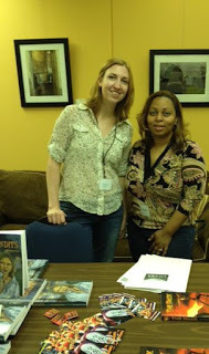 This is me and my fabulous summer intern, Cathy, doing the book giveaway and signing thing.And would you know it, this was the first time I met Cathy face to face?! Oh and I met a litany of wonderful guest at this small cozy event. I also got to talk to just about all of them. Each author was open, inspiring, supportive and the entire event literally bought tears to my eyes with the amount of support given.