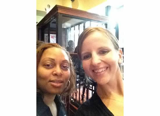 Eating with Kidlit group and smiling with 'thedomesticceo', Amanda Thomas