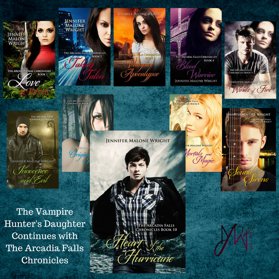 Author: Jennifer Malone WrightThe Arcadia Falls Chronicles is the follow up series to The Vampire Hunter’s Daughter. If you would like a FREE copy of The Vampire Hunter’s Daughter you can get one at this link https://www.instafreebie.com/free/G5nqI