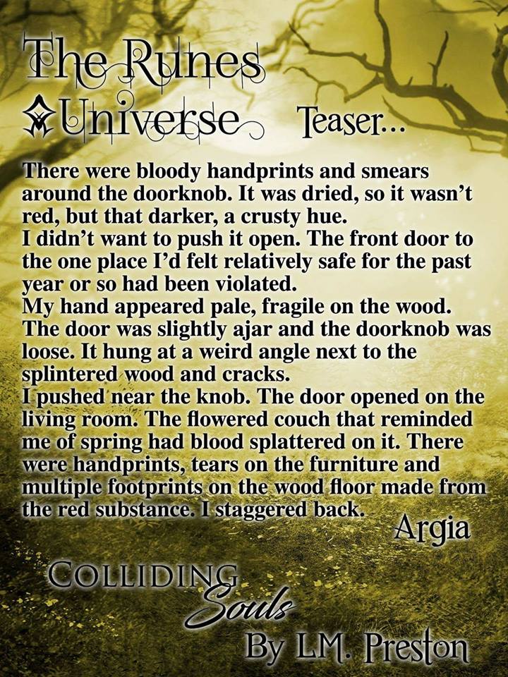 I am so excited to have new covers for this series. COLLIDING SOULS, Argia's story will be a spotlight in the 1st ever AMAZON KINDLE WORLD, RUNES UNIVERSE