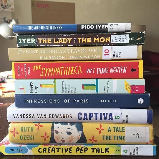 For the Japan book club, I loved Ruth Ozeki’s A Tale for the Time Being. Next up, Pico Iyer’s The Lady and the Monk. Couldn’t resist his Art of Stillness, because I’ll be home for most of the summer.
