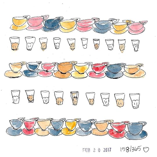 153/365 Cups, 6″ x 6″ watercolor and ink on paper. More fun pattern play![image error]