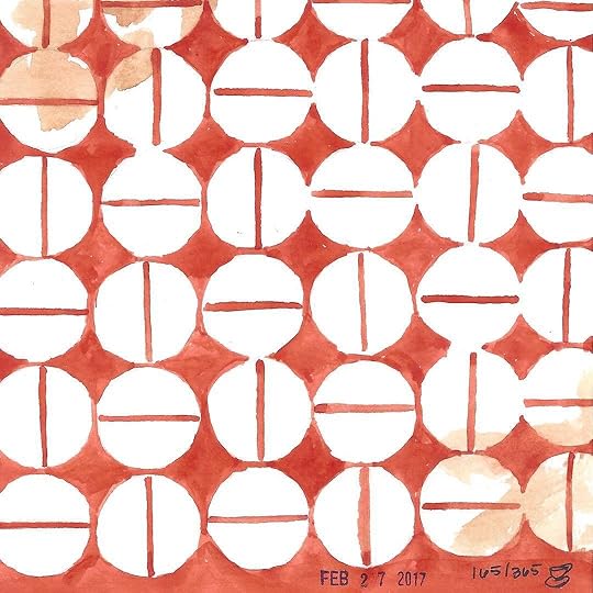Aerial View, 6″ x 6″ watercolor and ink on paper, 150/365 Cups. I love exploring pattern and have been having a blast riffing off of Jacqueline Groag’s amazing pattern designs. You can learn a lot by studying a master.