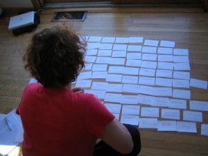 Using index cards in 2006 to map out Chasing Sylvia Beach