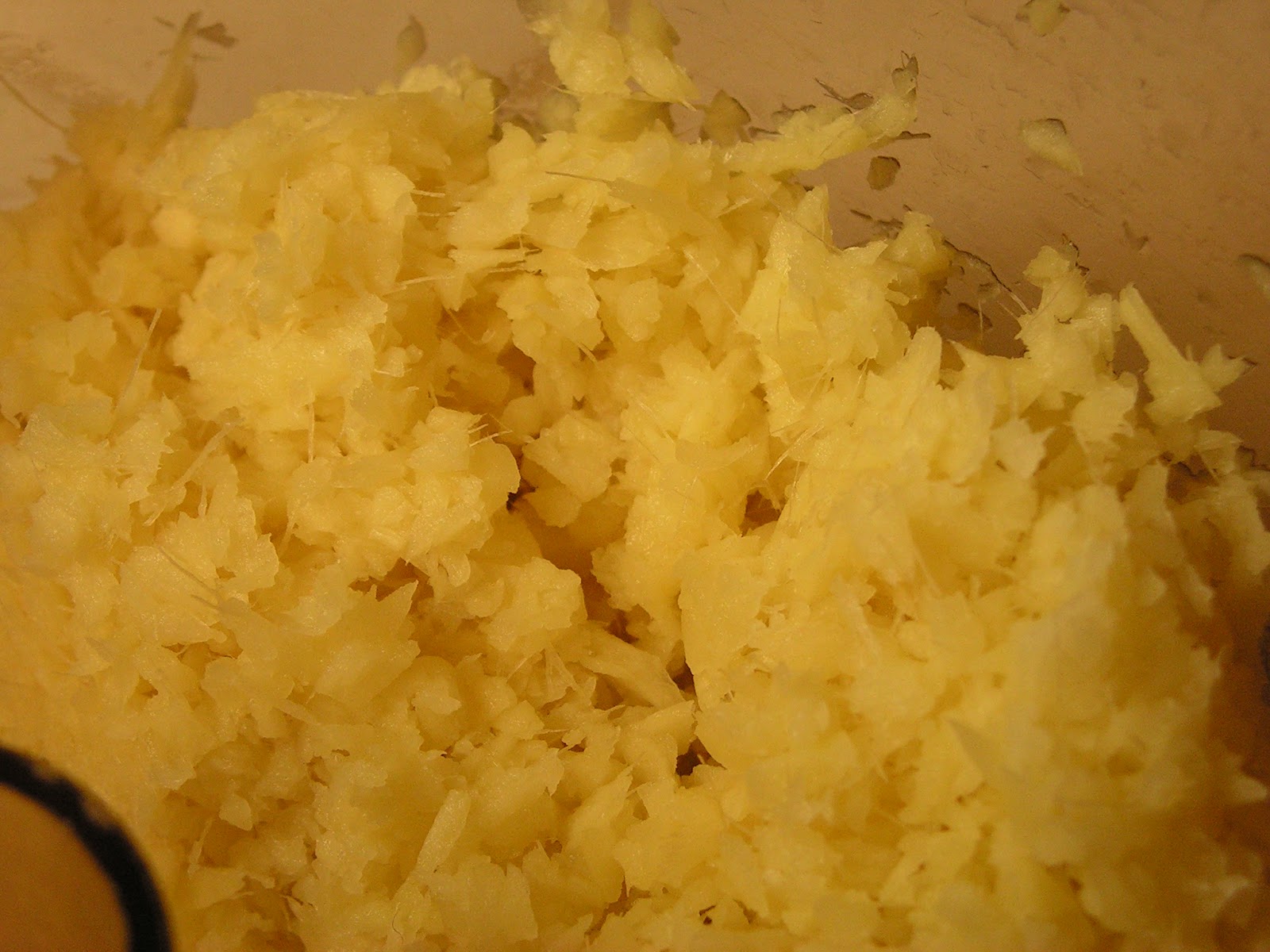 Press chopped ginger with back of spoon to extract all the yummy gingery goodness.