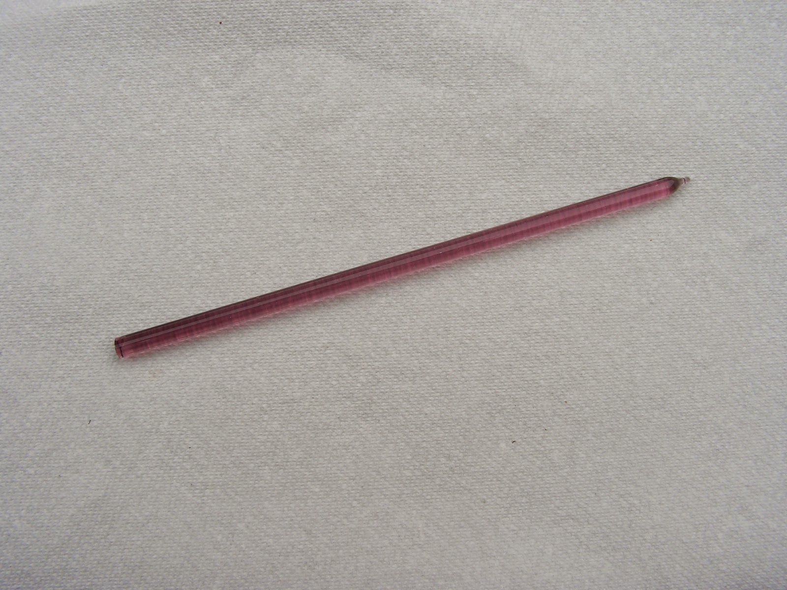 This picture is of one of the Double Helix glass rods that I use to make the Blue Galaxy Swirl beads - very DEFINITELY pink glass, no? The soft glass rods I use to make memorial beads with are all about the diameter of a pencil, and start out about a foot long.