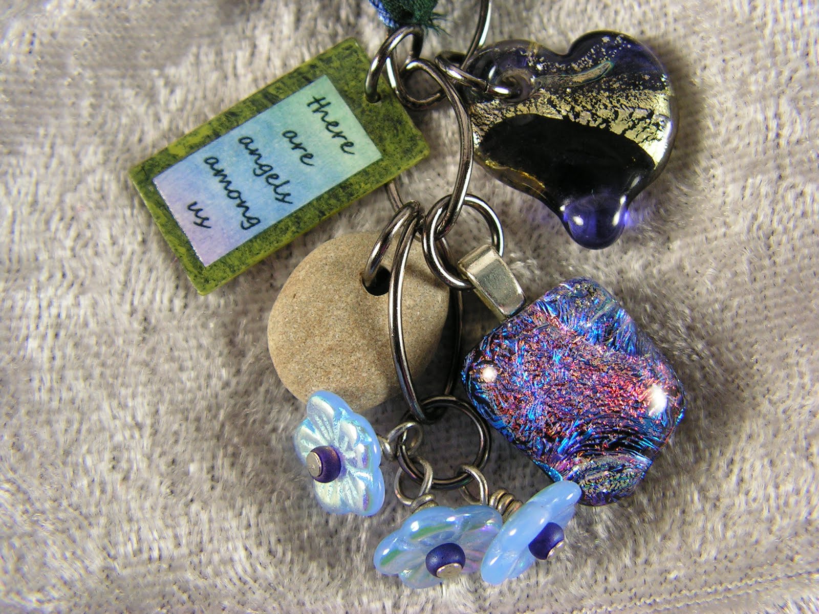 hearts, one of Peg's sparkle-icious dichroic glass cabochons, a cute little beach stone, and more of the adorable pressed glass flower drops.