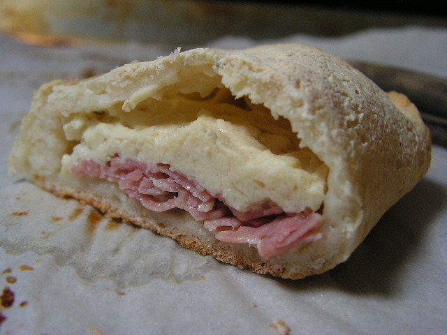 Veggie hot pockets. This pic shows how I rolled up the bottom layer of dough to meet with the dough folded over the filling.