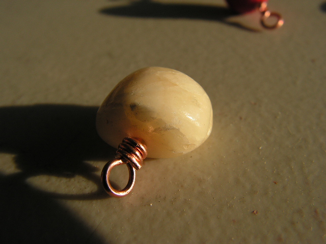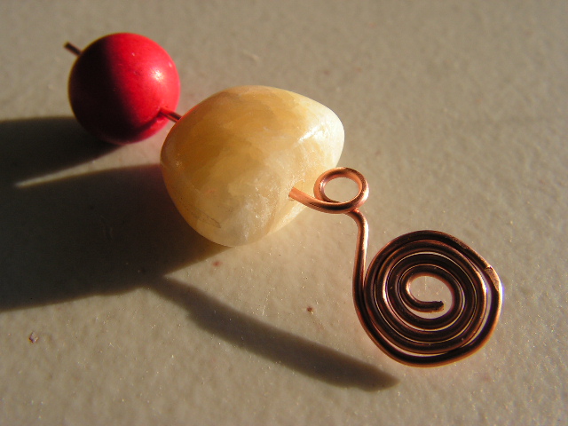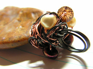 My current experiment is with wrapping it at the top with fine gauge annealed black steel wire and copper wire, accented with freshwater pearls and a Swarovski…it looks OK, but I'm not enchanted with it (probably because I'm jonesing to do the mixed media thing with it). What do you think?