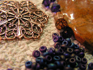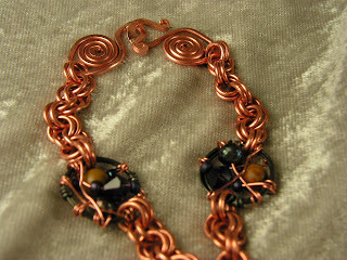 And finally, here's where I'm at with the bracelet.Yikes! I forgot to take a pic of the headpins I made to go with this bracelet. I made about eighty copper wire headpins the other day, and now I'm thinking maybe I should go make more. But not right now. First, I have a show to get through, and then I have a whole lotta eye candy to go look at and comment on!