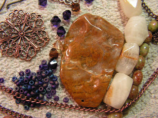 As I mentioned yesterday, I've earmarked a few of the stone beads that Ambra sent me for one of my mixed media art charm bracelets. I'll add one of the bowenite beads (the one with the most ochre & rust colors on it!) and a few of the jasper beads to add interest and meaning to the bracelet.
