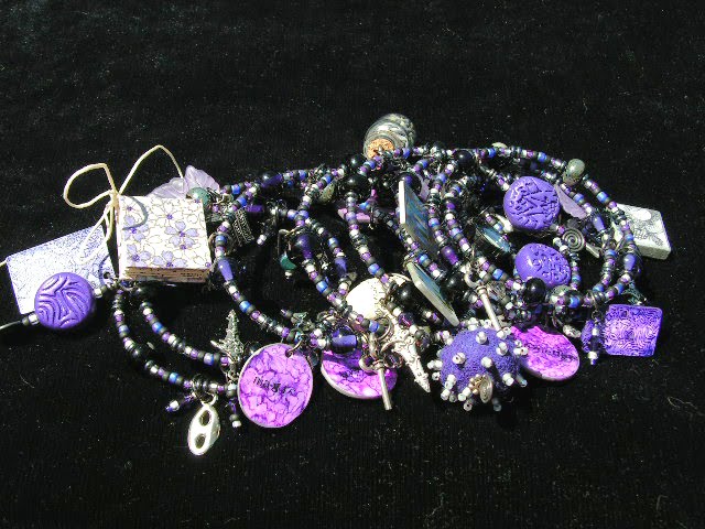 One of the best things about art charms is that you can create a truly customized piece of wearable art. I had the recent good fortune to work on a commissioned piece, with a theme of Hecate, the ancient triple goddess. Since I wasn't familiar with Hecate, I began with some research, which I forwarded to my client. My client reviewed and approved the notes I'd gathered, and selected the color scheme (royal purple, black, and silver), then I began work.