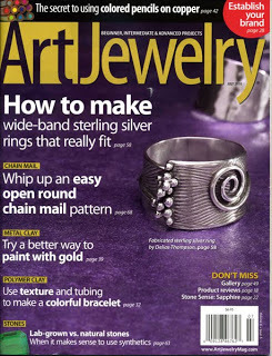 Just received the July 2010 issue of Art Jewelry magazine, one of my longtime favorites, probably because the artwork and editorial are both so inspirational. The coolest thing EVER though, is on page 78...it's right under the wobbly yellow arrow...nifty, huh?