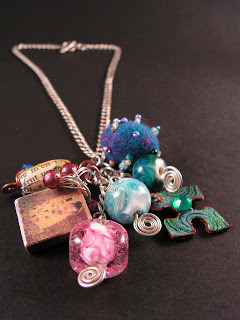 Mixed Media Art Charm Necklace, featuring art charms from our book and three of my Fractal Swirl beadsAfter nearly three years (er, yes, we ARE a bit slow...), it's almost here...the book Peg Krzyzewski and I wrote, Making Mixed Media Art Charms & Jewelry, will be at the 2010 Bead & Button Show in Milwaukee, WI tomorrow, June 12! Peg is going to be at the Kalmbach booth, modeling some of her amazing mixed media art charm jewelry and signing books. She'll be at the booth from 3 p.m. to 4 p.m....