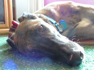 At long last, an update on our giant puppy-hound... He's a mixed media pup because he's got ink (tattoos in his ears) and steel (holding his leg together), as well as flesh and bone. Very appropriate since I'm a mixed media artist!