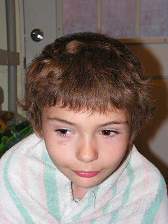 Recently, Archer announced that he wanted a mohawk...Jerry & I figured summer would be a good time for him to try it out...here are before and after pics: