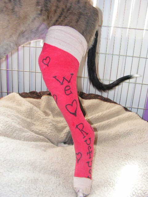 Rufie is still in a full leg cast, and I've been taking him in once a week for bandage changes. He does have a couple of bandage sores happening, which we expected with the full leg cast. We are all (Hansens and...