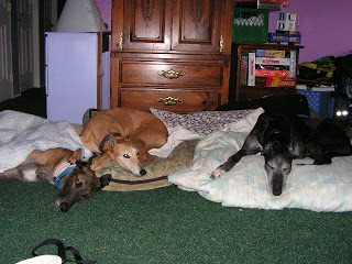 From left: Rufus, Ivy, and Sam, keeping the soft spots warm last nightJust got off the phone with the vet - Rufus came through surgery OK, but he isn't awake yet. Doctor Everett said Rufie's injuries were worse than they appeared on the x-rays, so he wasn't able to fix it as much as he'd hoped. He was able to do a partial fix, and the rest we just have to be patient and see if Rufie heals up well.