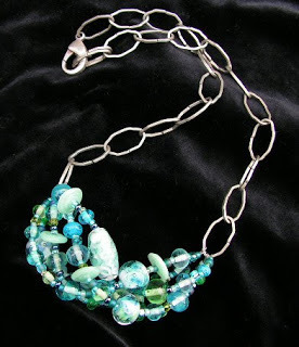 Statement: I like love beads.June 2010 Statement Necklace, in honor of the 2010 Bead & Button Show. Features 45 lampwork beads by me, some of which are from my Fractal Swirl series of beads.