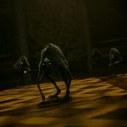 The sound of gunfire alerts them that there is a problem. They make their way down to the great hall, where the platoon is under siege from a mass of diminutive creatures. Despite their overwhelming firepower, the troops are overrun, and Differel retreats with her team, Ross, the girls, and Frombe. Carrig sacrifices his life so they can get away, taking a couple of dozen creatures with him. The survivors try to make it out the back, but are cut off. They are driven into the basement where they plan to make a stand while Ross calls for reinforcements.