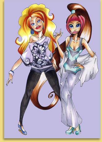 The Girls have trouble exploring the complex, narrowly escaping recapture several times. Then they find what looks like a lounge. Inside are two female personnel, a guard and a technician. Sunny goes in bold as brass, pretending she's one of them. As she distracts them, Eile takes out the guard and holds the technician hostage. The Girls then strip them of their uniforms and tie them up, then put on their clothes.