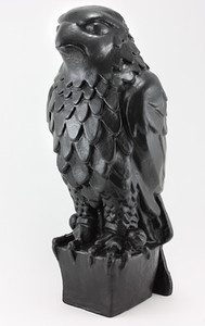 There are two types of MacGuffins, weak and strong. The weak MacGuffin was popularized by Alfred Hitchcock, when he defined it as "nothing at all". By which he meant it was something around which the plot revolved, but whose specific identity was so unimportant that the audience didn't care about it. Basically, a weak MacGuffin has little or no affect on the plot beyond motivating the characters, and often there is virtually no explanation as to why the characters consider it so important. As such, it could appear once, at the beginning of the story, and then disappear never to return, or it could be mentioned but not actually appear at all until the end. It could be present throughout a story but only as a feature in the background, or it need not appear at all. The Maltese Falcon (pictured) is a good example of a weak MacGuffin.