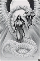 When Ceithlenn is in her beautiful-but-terrible form, her favorite weapon is a giant scythe, the blade of which is made from adamantine with an edge as sharp as a shard of broken glass. Because adamantine is 100 times harder than diamond, the blade never breaks and the edge never goes dull. She can cut through anything, limited only by her strength, and her strength is prodigious, almost as great as Medb's. Despite her prowess in magic, which includes offensive spells, she prefers to fight with the scythe, reveling in personal combat.